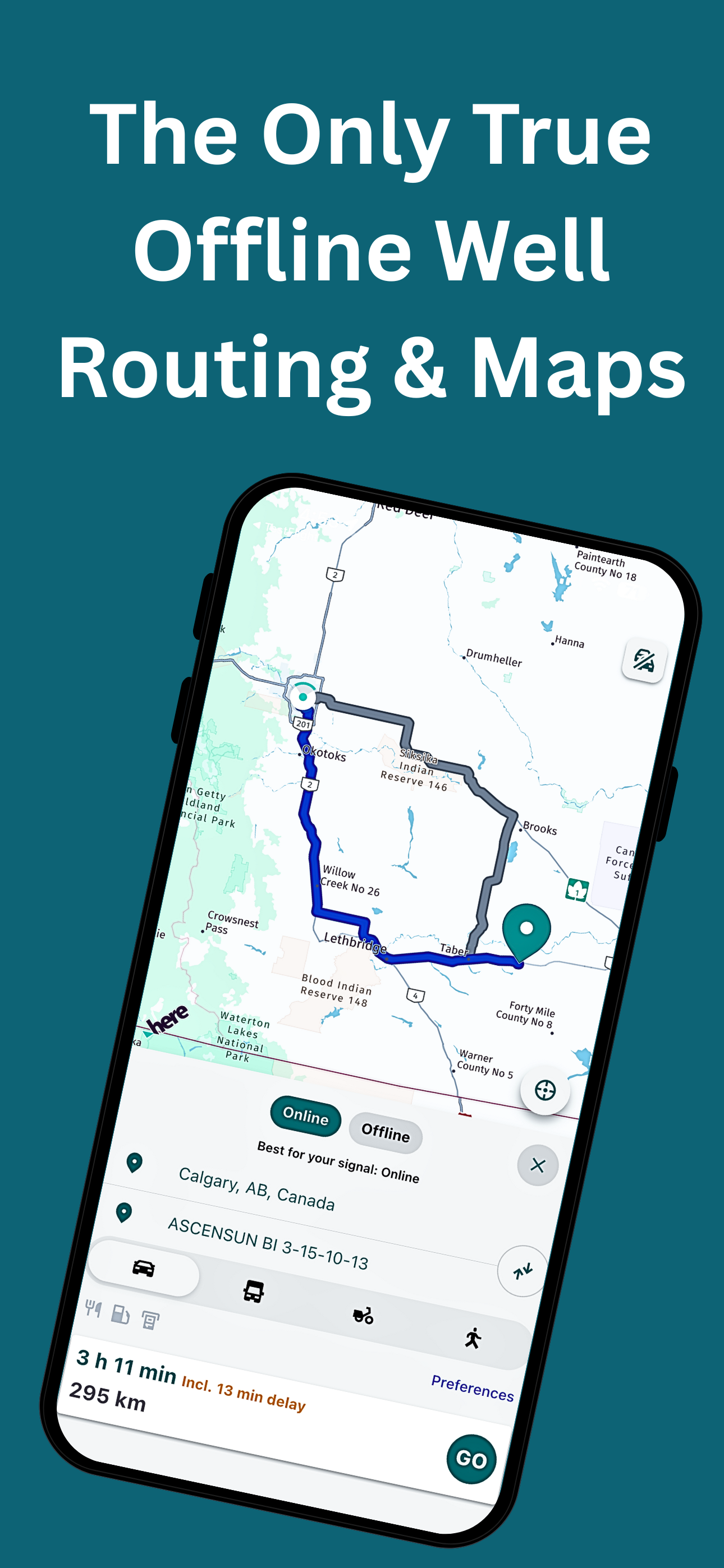 Download maps once and navigate with full turn-by-turn directions β even with zero cell signal. Designed for remote oilfield access where connectivity isn't an option.