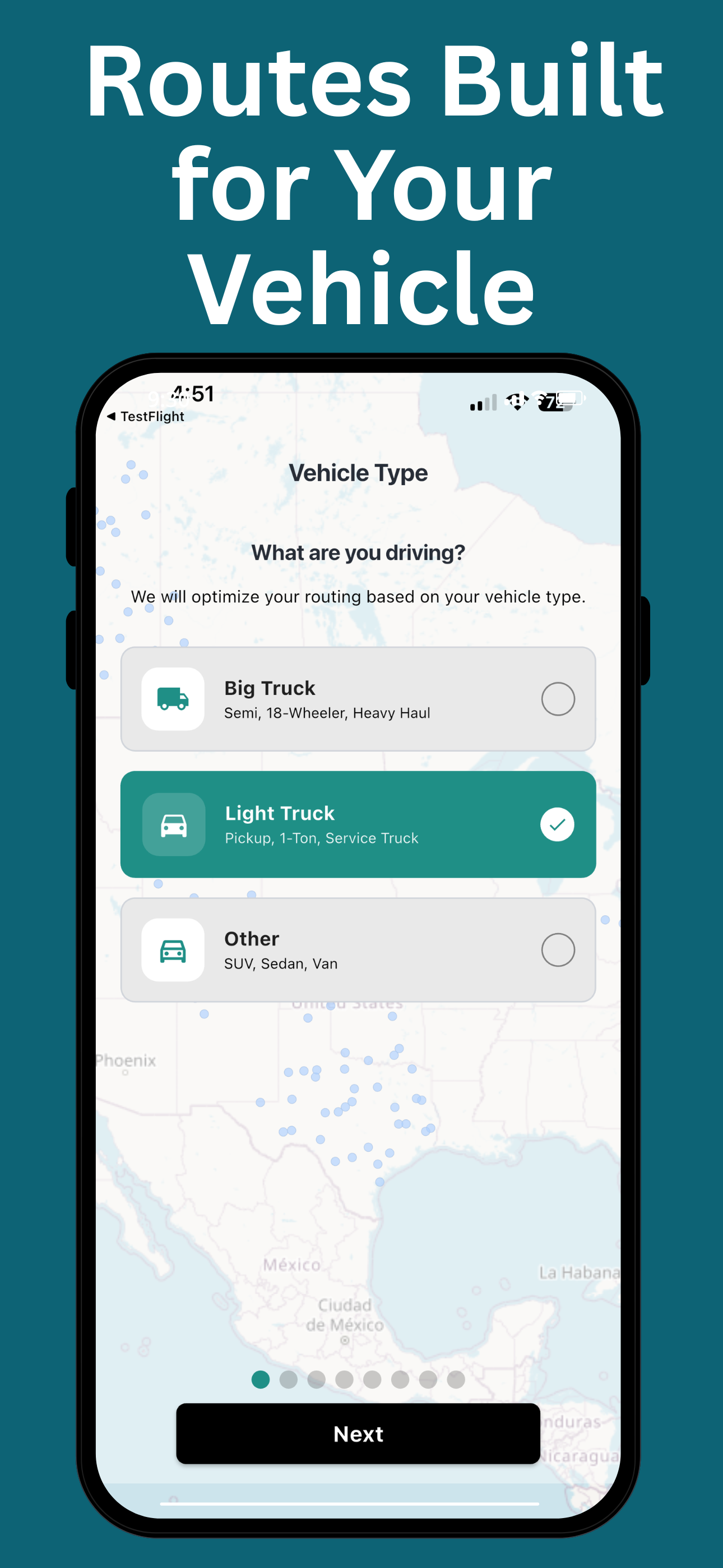 Get routing optimized for your vehicle type β from pickups to heavy haul equipment